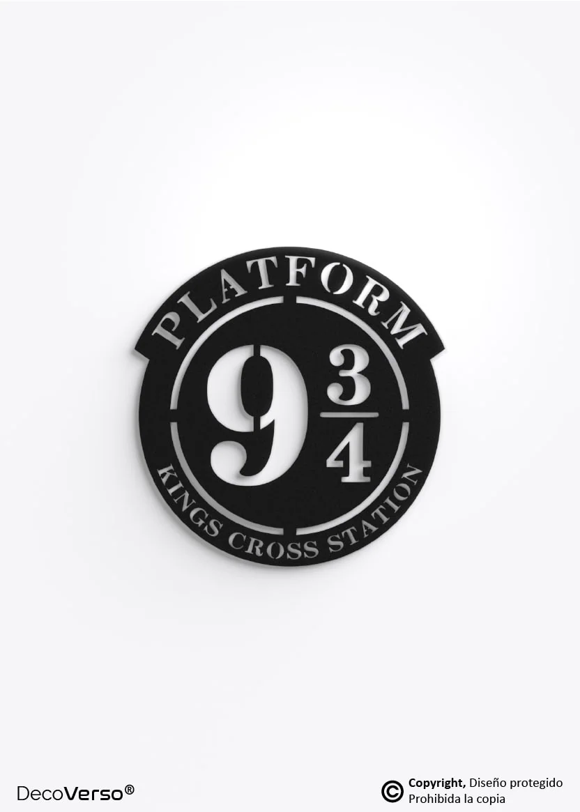Este diseño es una creación artística de DecoVerso® inspirada en el Andén 9¾ y el universo de Harry Potter, reinterpretada como pieza decorativa en metal desde un enfoque conceptual.