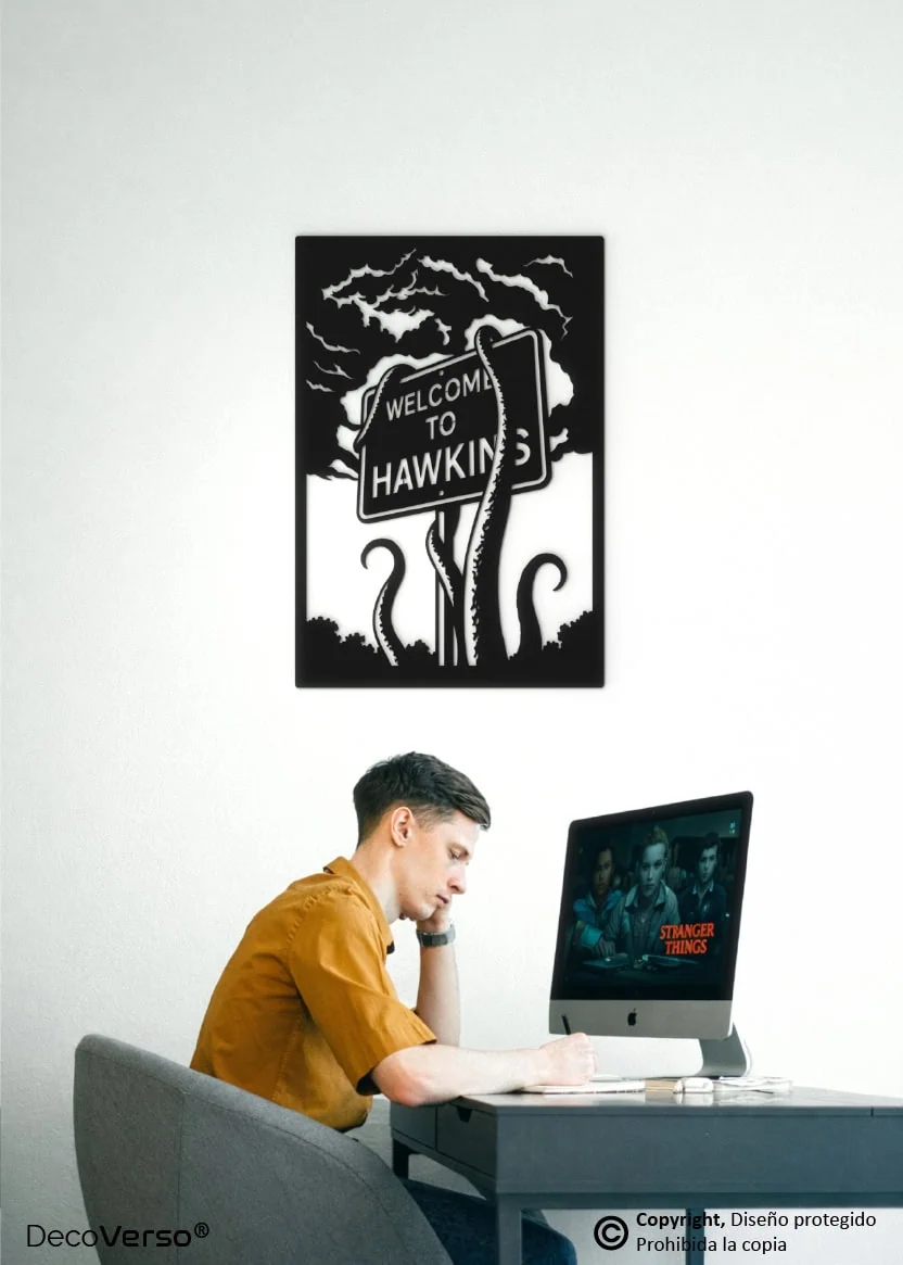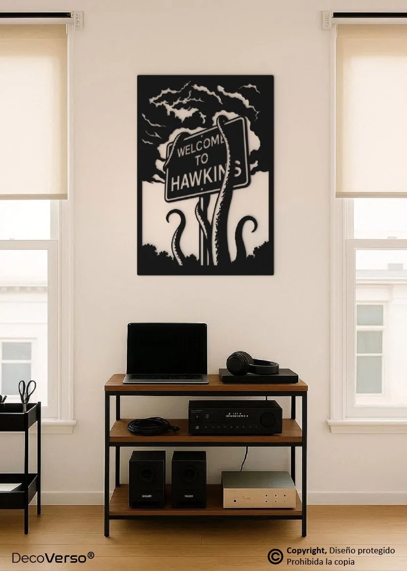 El Cuadro Metálico Bienvenidos a Hawkins es una excelente opción de regalo para fans de Stranger Things, amantes del misterio, la ciencia ficción y la estética ochentera.