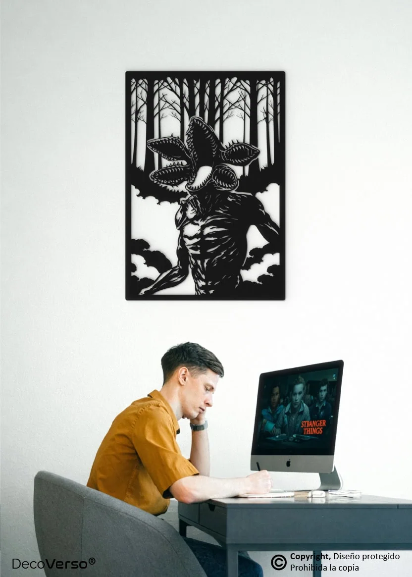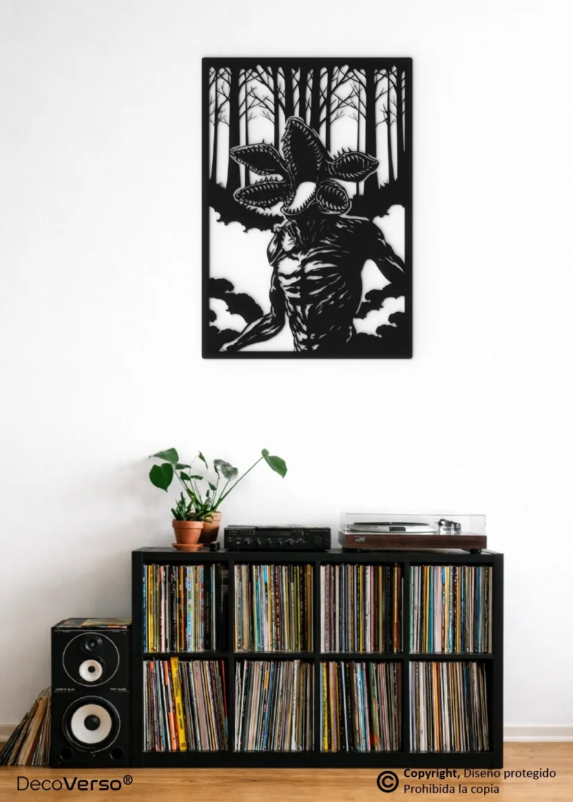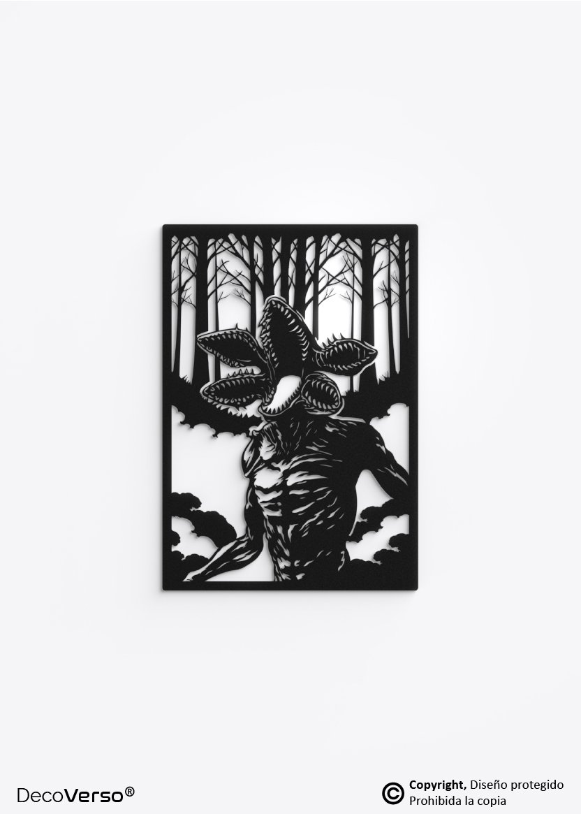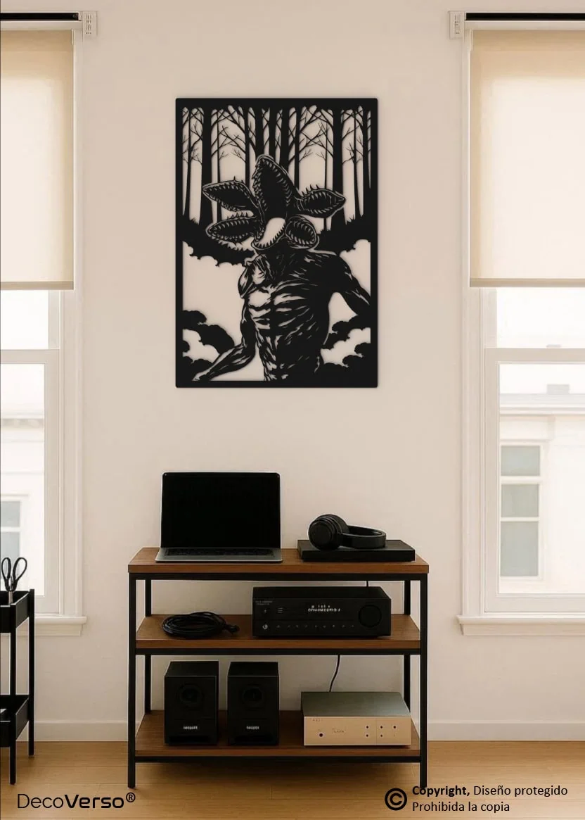 Este diseño es una creación artística original de DecoVerso®, desarrollada como pieza decorativa fan art inspirado en el universo Stranger Things y en la figura del Demogorgon.