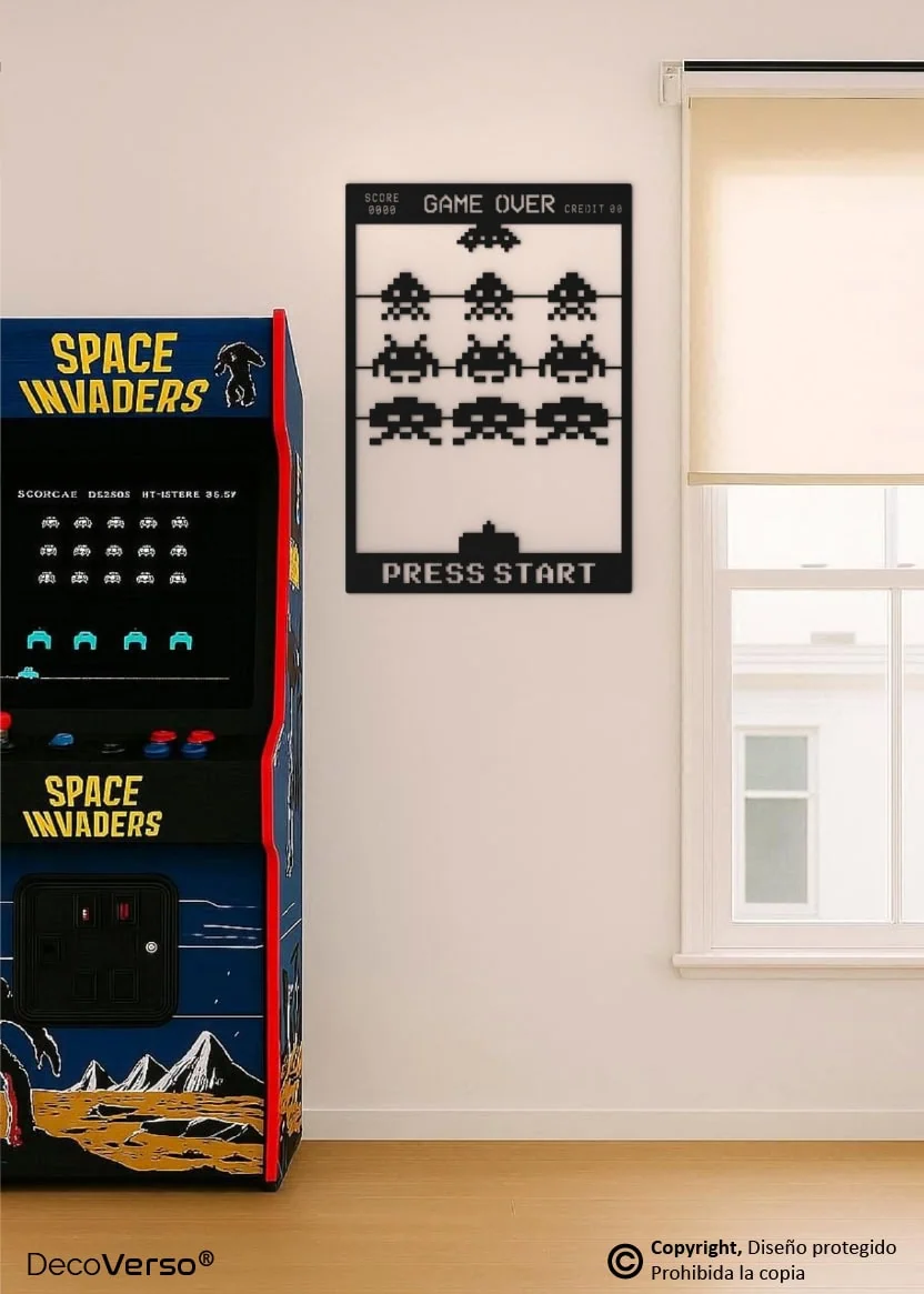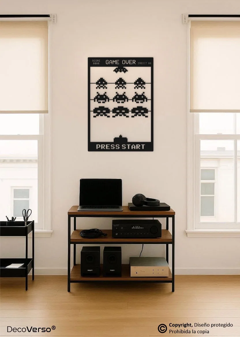 Este diseño es una creación artística original de DecoVerso®, desarrollada como pieza decorativa inspirada en el videojuego Space Invaders.
